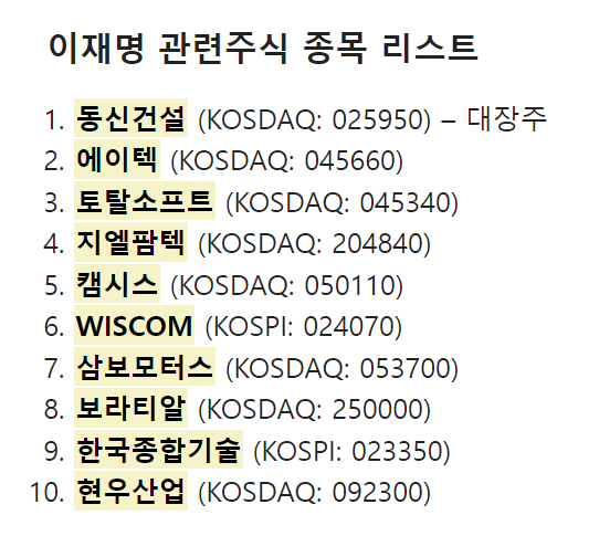 ▶추가적인 이재명 관련주 관심사항◀