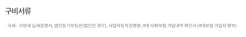 가입대상 재직자에게 안내 및 계좌 개설 이 과정에서 필요한 구비서류로는 국세·지방세 납세증명서, 법인등기부등본, 사업자등록증명원, 4대 사회보험 가입내역 확인서 등이 있습니다.
