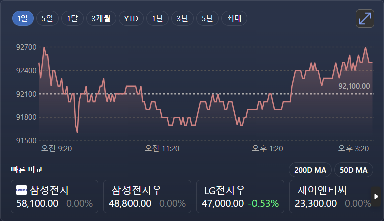 LG전자의 현재 주당 가치는 최근 글로벌 시장에서의 긍정적인 실적 발표와 함께 안정적으로 상승하고 있습니다. 특히, 가전제품과 전자기기의 수요 증가가 주가에 긍정적인 영향을 미쳤습니다.